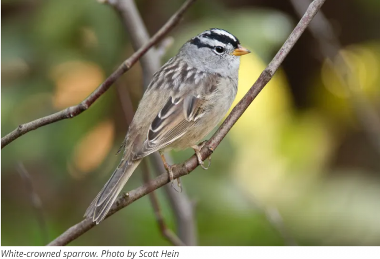 At this time of year, you can find the white-crowned and golden-crowned sparrow. These birds like wintering here, but they will head off to their breeding grounds by the end of April, so you’ll have to act quick!