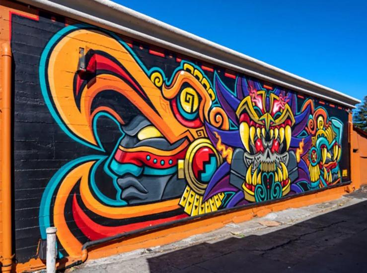 Jesse Hernandez, AKA Urban Aztec, an artist from Concord, mixes graffiti and ancient culture into his style. Think of the Aztecs meeting graffiti-esque.