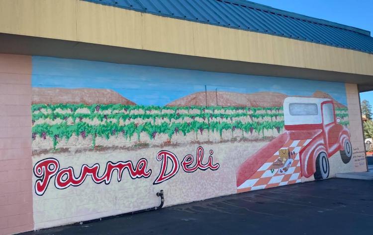 Right off Clayton Road, the newest addition to Concord's murals, is the special project done by the AP Art Students at Clayton Valley Charter School. The new mural features a lovely vineyard in the background with an old school truck and picnic set up in the bed.