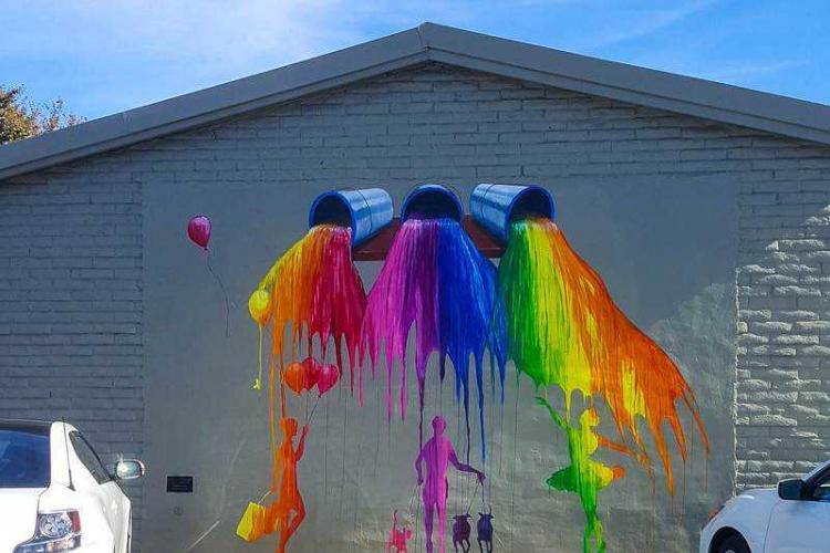 Other popular murals include a large, painted city map inside Cost Plus World Market at the Veranda shopping center, a collage of Mt. Diablo, Concord Pavilion and Todos Santos Plaza inside Trader Joe’s , plus the popular rainbow “paint can” mural on the side a building, both located in the Oak Grove shopping center.