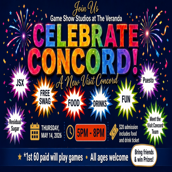 Are you ready to show off your Concord pride? Join Visit Concord at the sleek Game Show Studios at The Veranda for an evening packed with entertainment, networking, and celebration. Whether you're a lifelong local or just love our community, this is the party of the season!