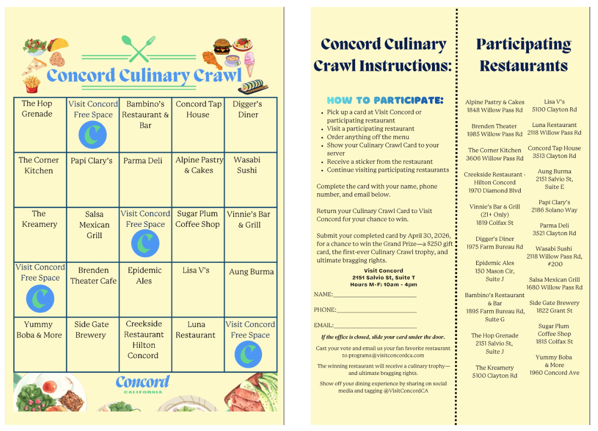 🍽️ Starting April 5th, pick up your official Restaurant card from any of our participating restaurants or swing by Visit Concord to grab one.