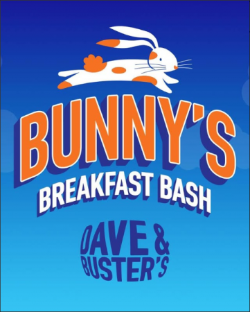 HOP TO IT! Join us Saturday, April 5 at 9am for Bunny's Breakfast Bunch! 🥞Skip the mall crowds and enjoy an EGG-citing morning of family fun with exclusive early access to Dave & Buster's!👑 The Eggstra Fun Ticket includes a banquet style breakfast, $10 Power Card® with Unlimited Video Game Play during the event, opportunity to take a photo with the Bunny, spring activities, egg hunt, taxes and a suggested 18% gratuity.🧺 The Brekky Basket Ticket includes a banquet style breakfast and suggested 18% gratuity.🎟️ All adults must have tickets for entry. Children under the age of 2 enter for FREE!