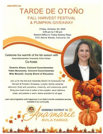 Celebrate the warmth of the fall season with Assemblymember Anamaria Avila Farias