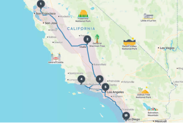 The road trip starts in Vallejo and heads south, but feel free to travel whichever direction works for you! Or even break up the trip into short, weekend getaways. Whichever way you travel, great travel memories are sure to be made throughout the Golden State.